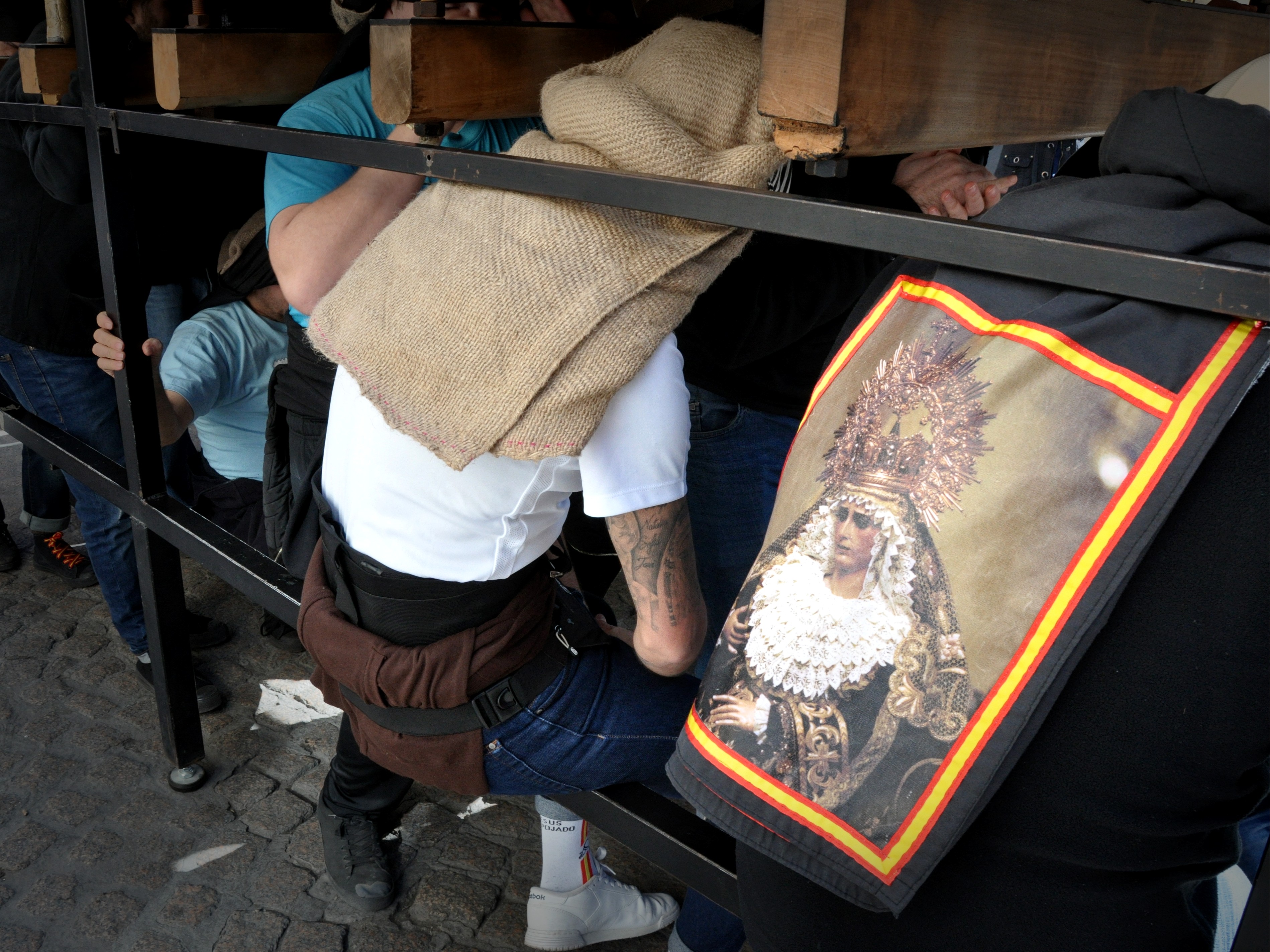 «El costalero tiene un componente de afición. Trabajar debajo de los pasos en esta tierra es un veneno, pero fundamental es la devoción. Uno se mete ahí debajo para hacer una manifestación pública de fe, una estación de penitencia en la que sabes que vas paseando a tus titulares», cuenta el capataz de la cuadrilla de la Virgen del Socorro de la Hermandad de El Amor, que lo es también de la universal Hermandad de la Macarena de Sevilla.